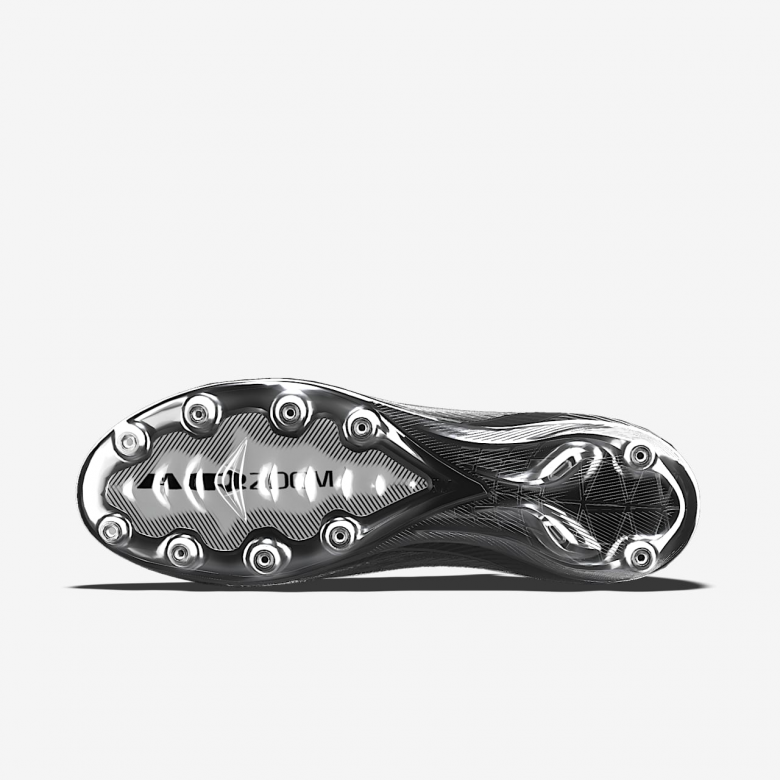 The wave-like traction pattern is a series of cascading studs, so it engages more surface area of the Air Zoom unit while also providing the appropriate amount of grip. The biggest stud is the same height as our traditional middle studs, so traction is not compromised. We paired the wave-like traction with evolved chevron and blade studs to help you stop when making quick cuts.